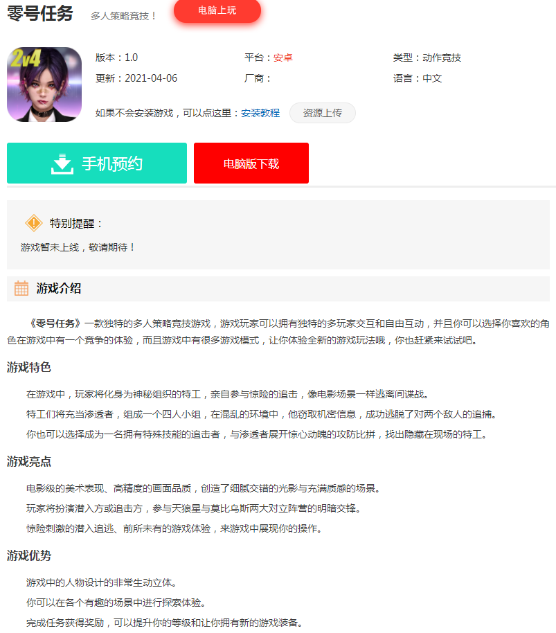 想要进入游戏服务器,自然首先需要下载游戏,而目前这款零号任务还没有正式上线,不过小伙伴们可以在3dm开启预约,小伙伴们可以提前进行预约,完成预约之后就可以第一时间下载这款游戏了。