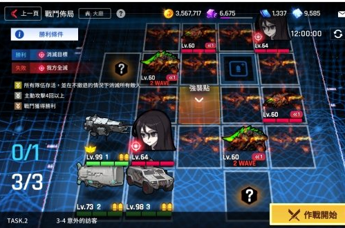 本图3个登陆点,2船出击如上图所示,不会翻车,但是有2号船会因弹药不足被攻击而离场,离场会掉员工忠诚度,但是影响较小。过一次图油耗620(补2发弹药),员工经验1940,公经验54,t4模具1-2个(多为2个),金币4w8及以上。