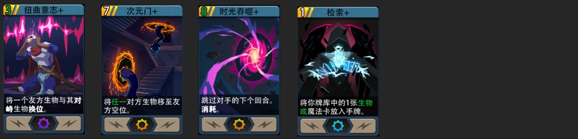 核心思路:消灭对方优质生物卡的同时己方能占场,缺点需要凑齐组件再加入卡组。