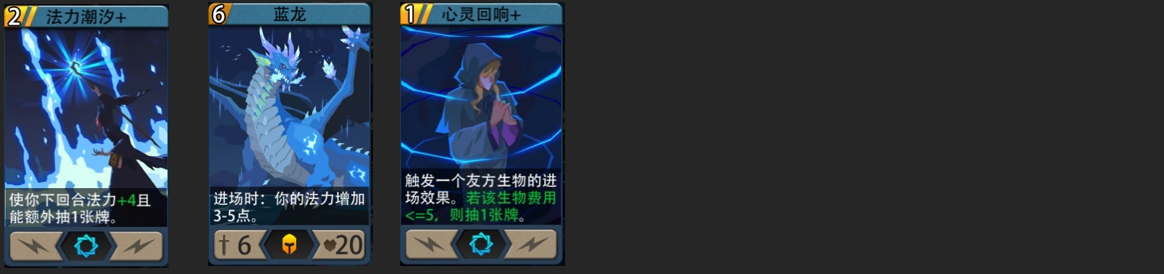 核心思路:开局通过法力潮汐快速跳费,第三回合能上蓝龙配合回响快速铺场。