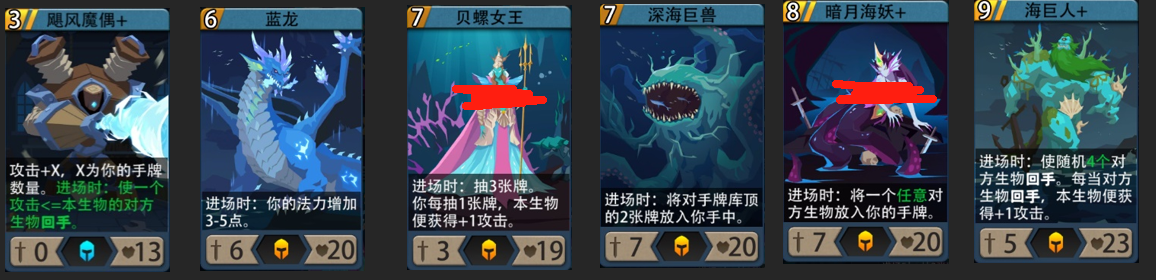 可配合生物卡:飓风魔偶+ 蓝龙 贝螺女王 深海巨兽 暗月海妖+ 海巨人+
