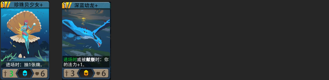 (2)上场珍珠贝少女*2,利齿鱼*1,剩余法力值0,结束回合;