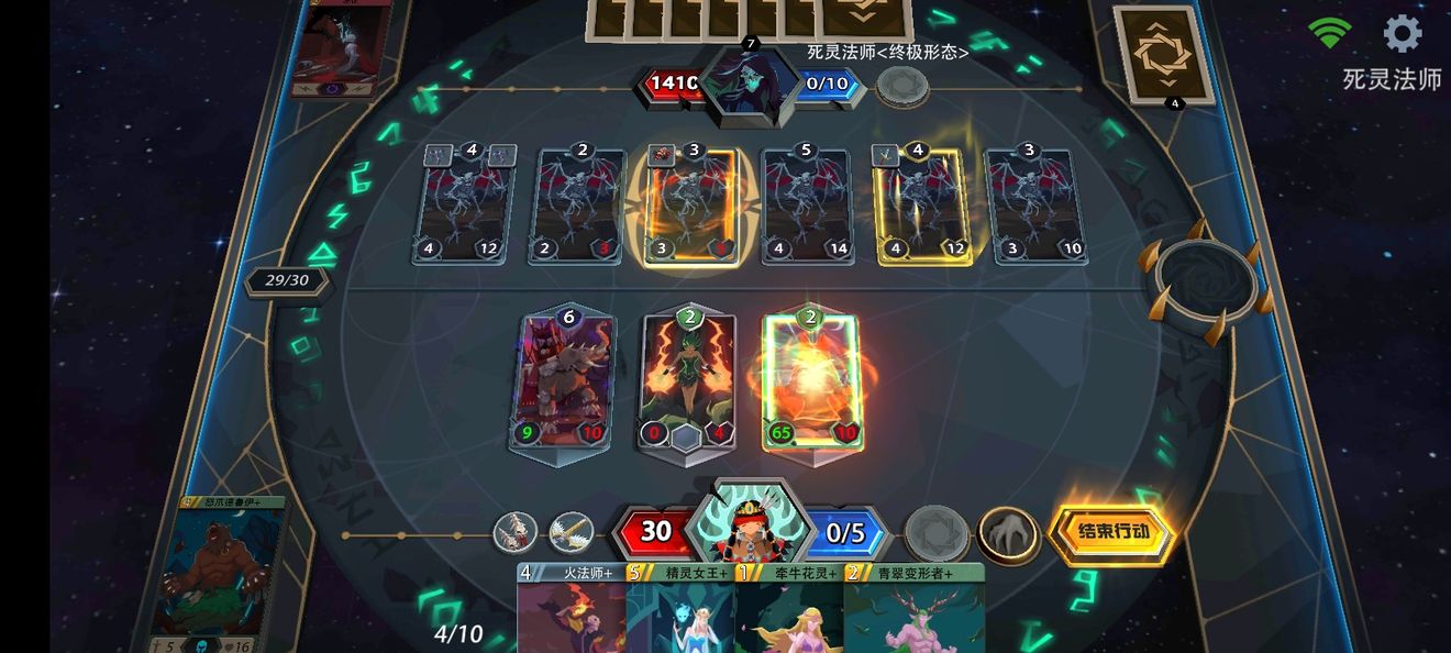 光明试炼推荐使用森之萤来打,噬法狩猎者很适配森之萤,她的技能可以给很多1费法术,能很好的加攻。