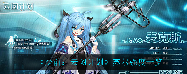 少前云图计划将在7月13日开启删档测试,很多小伙伴都很想知道游戏中的苏尔强度怎么样,今天小编给大家带来了《少前:云图计划》苏尔强度一览,感兴趣的小伙伴一起来看看吧,希望可以帮助到大家。