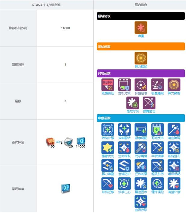 关卡信息:“罗萨姆的信息节点,各种强化函数充斥其中,留意敌人的分兵战术。