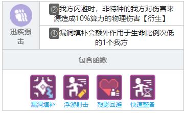 特种释放技能时,为我方生命比例最低的单位提升10%的闪避,最多叠加5层(漏洞填补)