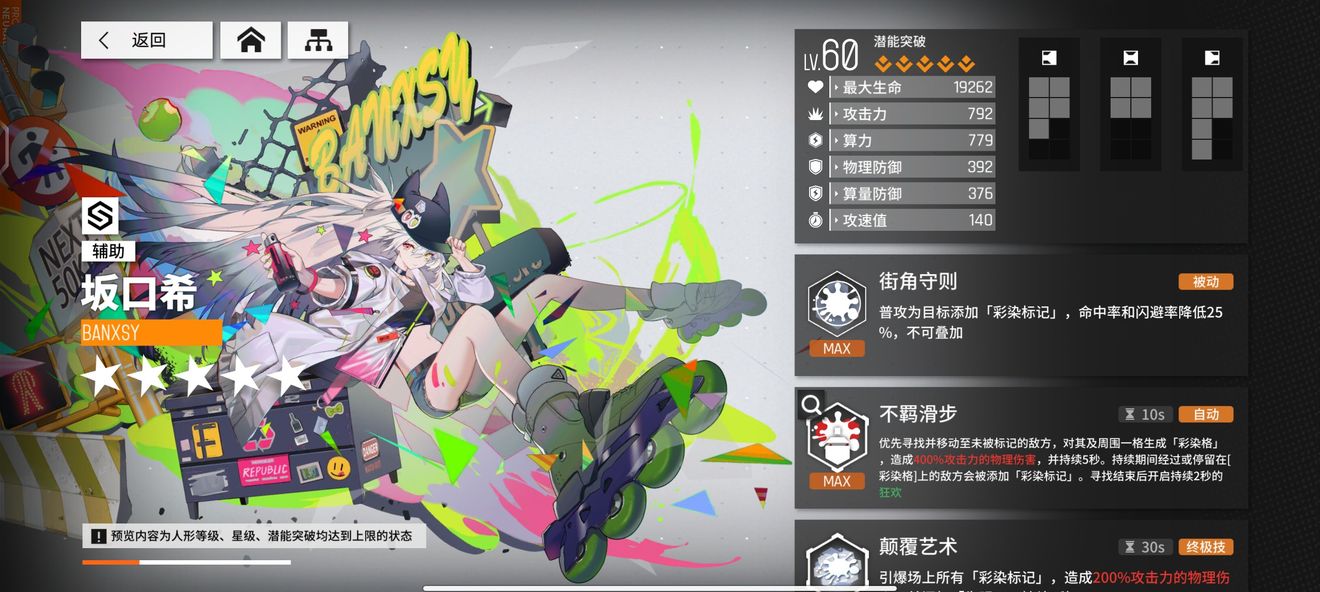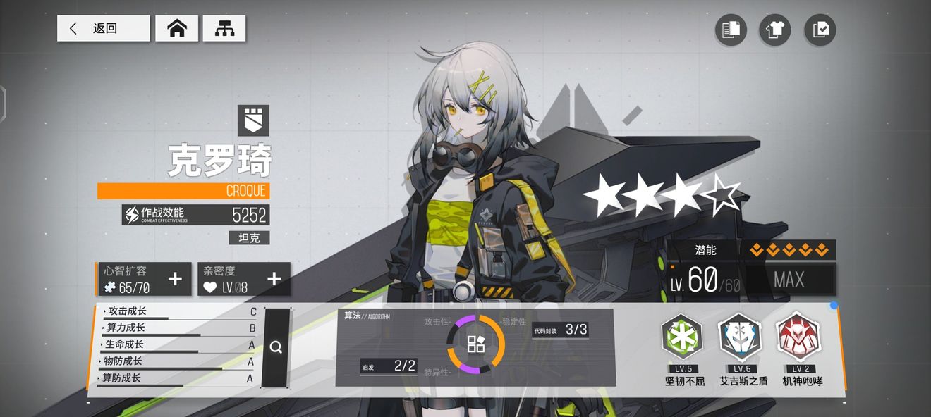 赠送的初始橙卡意外的好用,就说她作为一个坦的机制:小技能首次释放全图嘲讽帮助后排缓解压力,后续释放两格内嘲讽,盾爆了失效,我的天,这仇恨拉扯机制可不要太优秀,以及被动也是为小技能服务(实际上效果不怎么样),大招五星效果更是恐怖(定身,减50%攻击、算力)强就完了。
