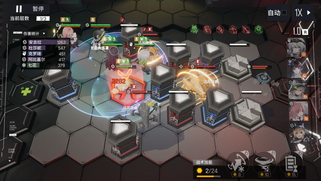 从结果上看,两套函数3/4的特种基本全程auto过图。(这里我的微信娘站位有问题,应该站在kk后面,这样就不需要卡时间用终极技能拉仇恨了)