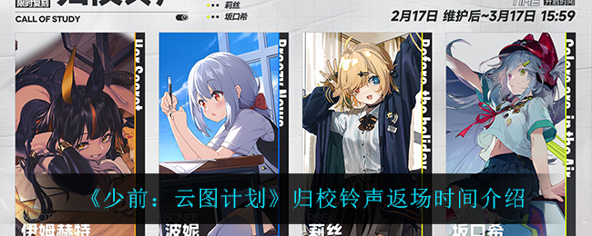 以上就是小编整理的关于《少前:云图计划》归校铃声返场时间介绍的全部内容,更多游戏攻略请持续关注这里下载站!