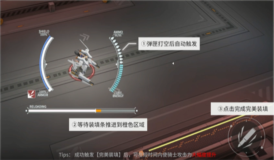 游戏另一大特色便是“完美装填”系统,装填期间在黄色区域进行换弹便能在后续短时间内大幅度提升伤害,建议各位多多利用。