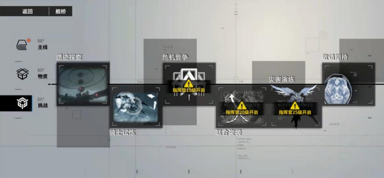 右侧则都是游戏主要的玩法功能。上方显示了当前的联合币(游戏币)、量子结晶(抽卡用)、商业凭证(氪金点券)。下方是体力值,最大120点,6分钟回1点,可别溢出哦。再下方的“出击”则是我们要面对的各个关卡地图。右侧一列中,当满足一些条件后便可在“成就”界面领取量子结晶;“仓库”显示了已有的武器、材料等道具;“编队”可以提前准备好要作战的角色;“骑士”则是进行角色养成的地方。最下方,“任务”顾名思义,每天看下完成情况,别忘了领取奖励;“伊甸”是家园系统,需要通关主线2-10才能开启;“商会”里可以买到许多材料;而“补给”则是众所周知的抽卡了。