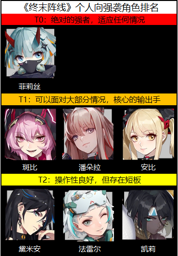 终末阵线伊诺贝塔游戏当中有许多不同的角色,很多玩家都十分关心这些角色的强度排名是怎么样的。今天小编给大家带来了《终末阵线:伊诺贝塔》强袭角色T度排名的内容,感兴趣的小伙伴们一起来看看吧。