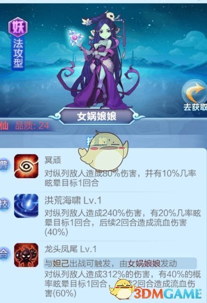 助阵:女娲娘娘、牛魔王、青龙、妲己、地涌夫人、朱雀