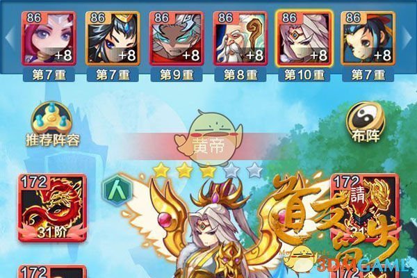 优点:这个阵容玉帝也可以换成哪吒,哪吒的竖排的伤害也相当高,在前面伤害加深的BUFF下,哪吒能再战斗开始时迅速秒杀对面的一两个敌人。助阵神仙相应也可以做下调整,让托塔天王和玉帝助阵,为哪吒加成仙缘。