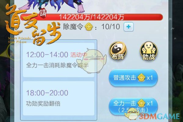 一番对话之后,对这些说不听的妖魔我们就要用武力教育它们。由于妖魔自身会有强弱之分,血量各有不同,有些可以一次秒杀,有些则需要多打几回合。每一回合需要消耗一个除魔令,全力一击则需要消耗两个。不过在每天中午的12点到14点之间,全力一击只需要消耗一个,所以在这个时段可以多杀一点,以获取更多的奖励。