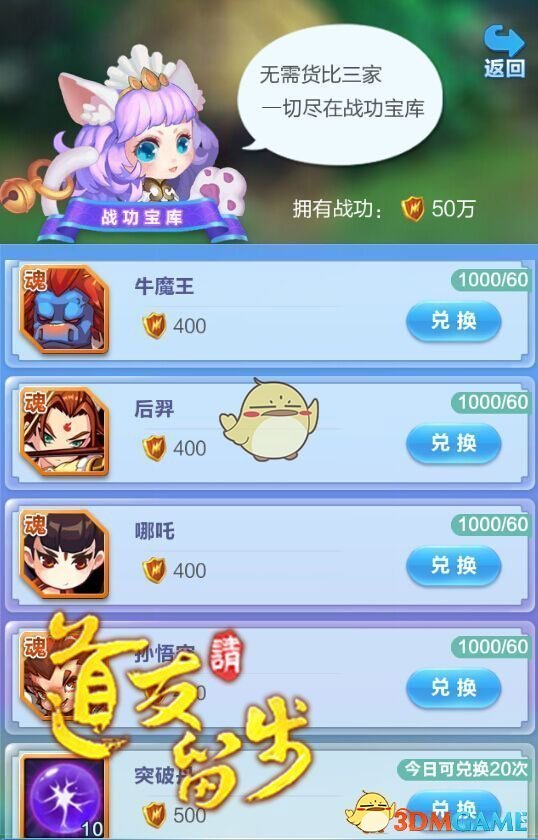 功勋数达到每日相应需求可以获得相应的奖励,同时获得的战功可以在商店兑换突破丹,神仙魂魄等高级道具。