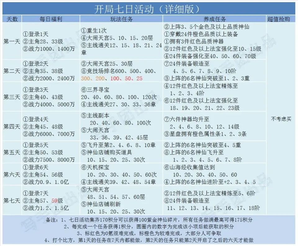 七天乐任务图,可以提前查看任务,提前准备。每天跟着任务走,都挺容易完成的,任务做满有175积分,170积分就可以拿到紫金神仙,有5个任务完不成也没事。