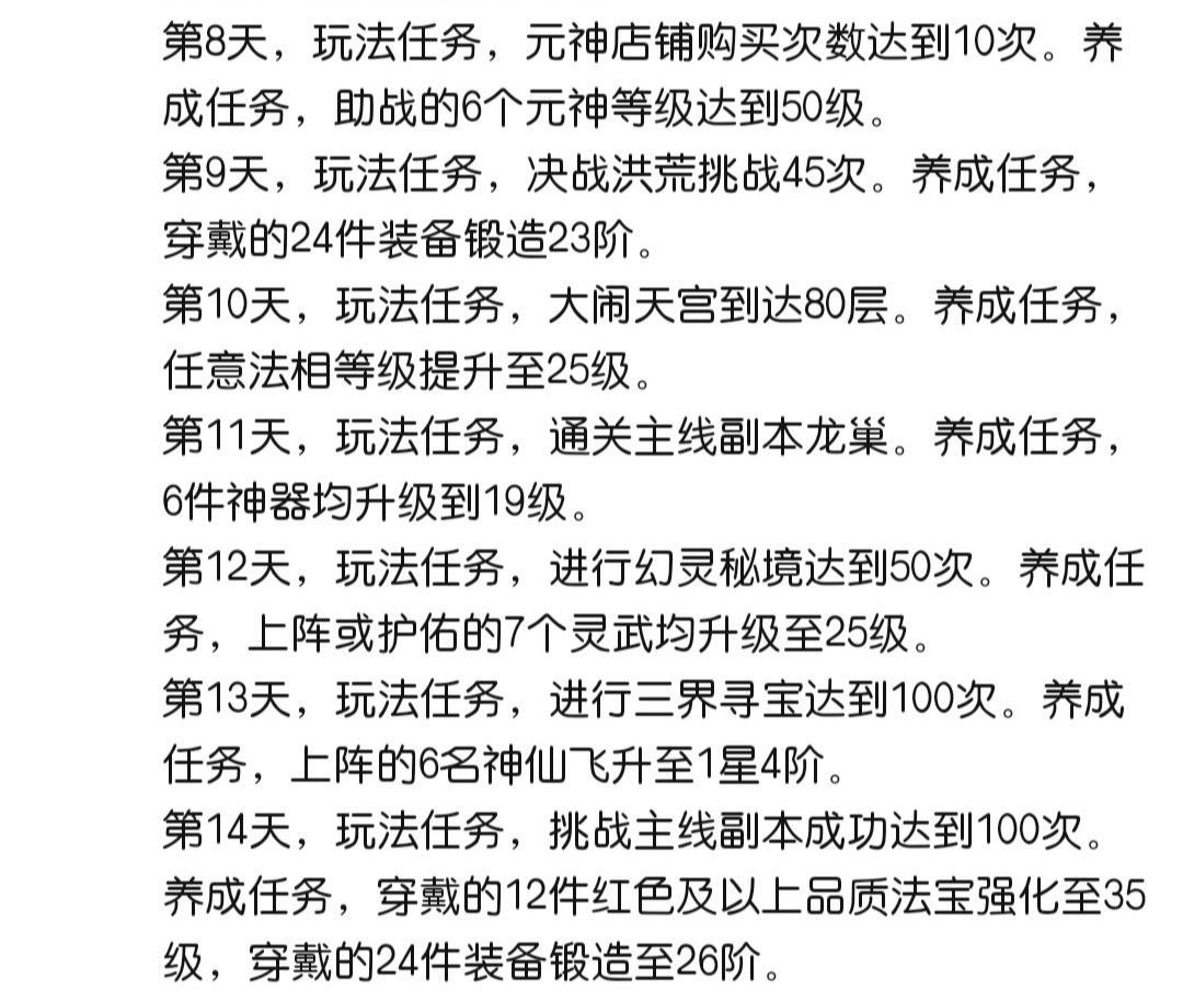 七天乐任务图,可以提前查看任务,提前准备。每天跟着任务走,都挺容易完成的,任务做满有175积分,170积分就可以拿到紫金神仙,有5个任务完不成也没事。