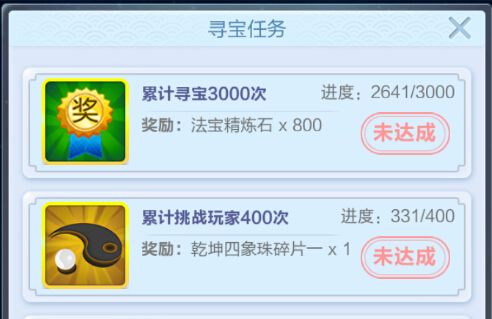 完成寻宝任务可获得大量物品奖励。