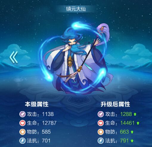 升级后神仙的基础属性将会提升,从而提升战斗力,同时将会解锁下阶神仙进阶的条件。