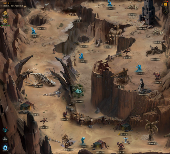 4.修复「营地哨塔废墟」,可永久消除地图营地哨塔周围的2只恶魔大军:击杀「荒漠沙洞」沙虫获得「龙子皮」,通关荒漠沙洞的「沙虫巢穴」后新选项「跳入沙洞」可前往「峡谷沙洞」,「峡谷绿洲」获得「铁木」