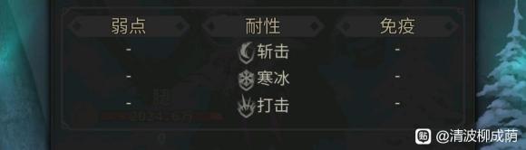 在怪物面板有抗性标注,默认为0抗性,弱点为-25抗性,耐性为50抗性,免疫为100抗性。