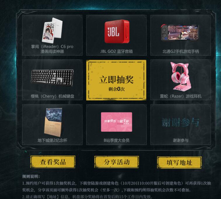 2.请正确填写[地址]信息,转盘部分奖励将在首发后的15个工作日内发放。