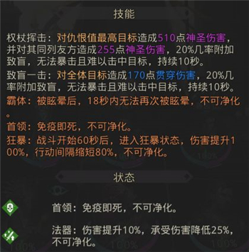 权杖会给主体加一个增益,降低25%的伤害,伤害增加10%