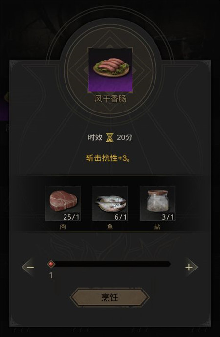 开局吃3个【风干香肠】,斩击抗性+3。蓝将不会被一刀秒。
