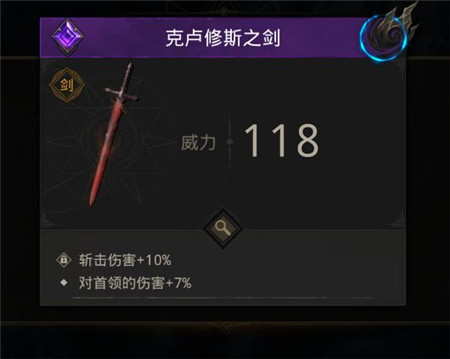 打完克卢修斯,之后给一个紫色绑定装备【克卢修斯之剑】