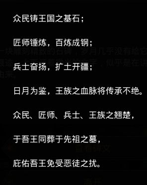 我们通过查看【石碑】发现我们需要打的关卡顺序为【众民葬室、工匠葬室、兵士葬室、王族葬室】
