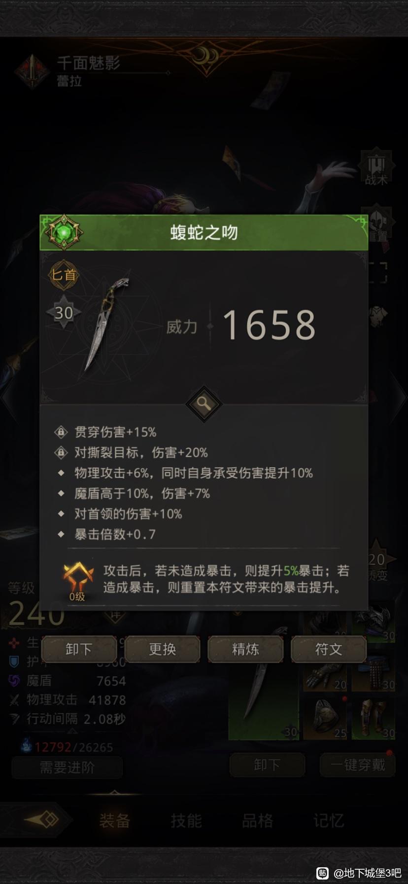 4、有无绿武差别不大,无非就是快慢问题,这boss最主要就是活着,只要活着就一定能过关。注意事项:一定不能带狂热。狂热会减自己减伤,推荐伺机,有暴击率加成