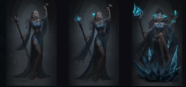 对敌方全体造成x(400%/530%/870%魔法攻击)点寒冰伤害,若目标无魔盾,则附加迟缓。