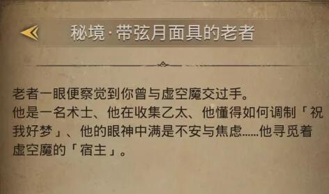 接下来在第18层到28层有几率出现术士卢文,在这里可以调制祝我好梦~这位戴着弦月面具的神秘老者又有着什么秘密呢……