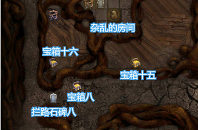 14、圣树二层(13,26)宝箱十四,击败恶魔大君后8000力量开门,获得机关石块*1。