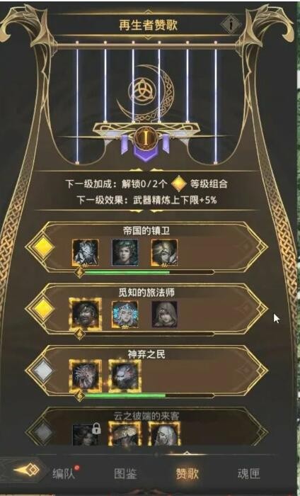招魂师们只要集齐赞歌组合中一定品质的对应再生者,即可解锁超强buff加成!