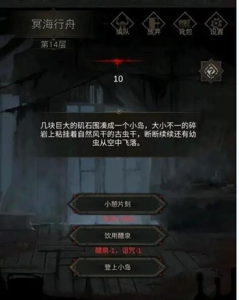 第14层:使用醴泉把负面buff消除(可以一直使用!只要你有)登上小岛