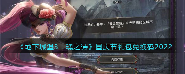 《地下城堡3: 魂之诗》是一款暗黑魔幻风的文字地牢探险RPG游戏,游戏中兑换码可以免费换取一些资源,国庆小长假刚刚结束,不过很多伙伴还没有领到地下城堡3魂之诗国庆节兑换码,下面小编就给大家带来了《地下城堡3:魂之诗》国庆节礼包兑换码2022介绍,新鲜蚊子腿,速来领取吧!