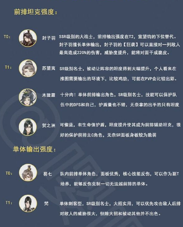 4、推荐理由:封子羽自身拥有高输出配合虞沐阳提高坦度