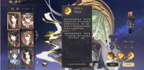 宸王宣望钧在游戏中是一位UR级别的名士角色,其角色定位为前排群攻,技能介绍具体如下: