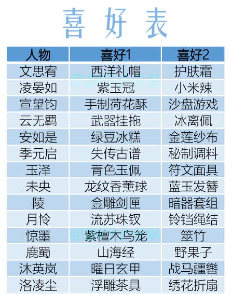 以上就是《花亦山心之月》名士喜好表一览,更多游戏攻略请持续关注这里下载站!