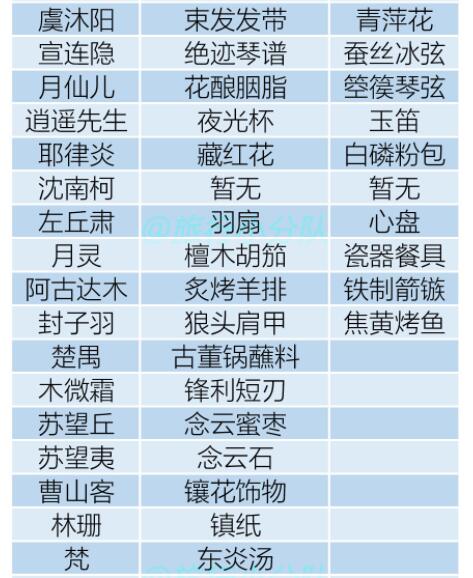 通用的两个物品也没有具体数值,但是目前没有名士的喜好是那两个,送给谁加的好感度都是一样的。