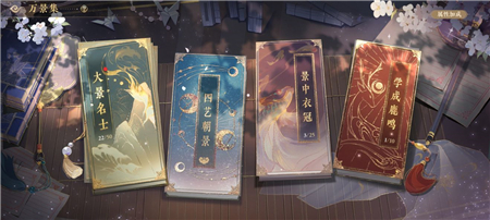9、万景集中,大景名士、四艺朝景、景中衣冠、学成鹿鸣,分别是卡牌的养成、四艺的搜集、衣服的搜集还有学籍的提升,有红点一定要记得点进去,会有永久的属性加成!