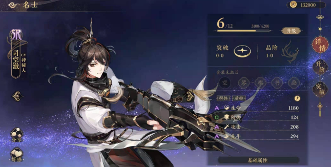 【天星箭】:大招可以造成全体100%攻击力的输出,但是对于被动影响效果的敌人,可以提升40%的暴击率,不过本身的攻击倍率不高,所以实战当中还是作为辅助角色使用比较好,自身是无法打伤害的,毕竟只是sr级别的名士。