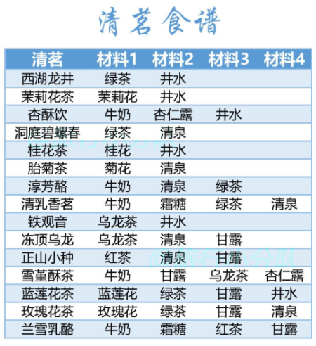 2、茶点的具体食谱配方如下所示