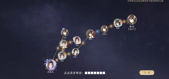 4就像这样,一条线连接你和神秘人,此时神秘人的头像和id都会显现出来,最下方点击四个白色小方块,可以获得暗语。这样就代表完成了哦