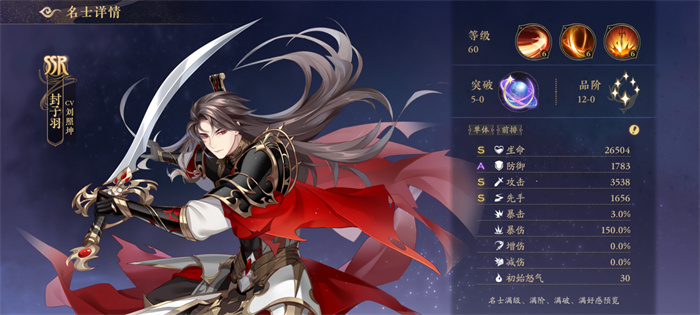 技能描述:封子羽越战越勇,使出浑身气力痛击敌人,气吞山河,对一列敌人造成攻击力175%的怒攻伤害。
