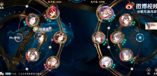天璇阁13层,单体队依旧是了了的火海来抵消敌方的月灵回复,1号位利用月怜、宣望钧等名士的护盾来硬抗沈南柯的高爆发,(注意一点:月怜被击败后被动消失),手动玉泽先行动,陵后行动,进行单点逍遥,减少被沉默概率。