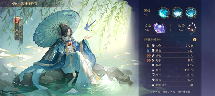 技能描述:未央摇转画伞,对敌方单体造成攻击力100%的普攻伤害,无视目标10%防御。