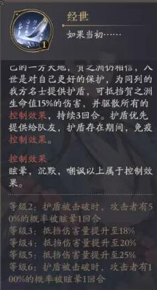 怒气技能让她成为一张眩晕对策卡,0突即有50%概率无条件眩晕,如果能突5,则眩晕概率变为100%,如果和贺之洲的破盾眩晕配合得当,再加上文司宥这类概率眩晕,能够将对面晕成一片。此时如果输出携带赤枭四艺,对被控单位有25%增伤,想必是可以收割一波的。